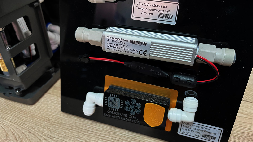 Besonders im Mittelpunkt stand unsere neue Auftisch-Osmoseanlage SMT 7000 MEDIVITAL mit einer 16 Stufen Trinkwasseraufbereitung nach dem Prinzip der Umkehrosmose . Diese Anlage ist mit den einzigartigen Vitalpure® Modulen ausgestattet, die mit Rosenquarz, Amethyst und Bergkristall kombiniert sind. Besucher hatten die Möglichkeit, sich über die Vorteile dieser Mineralien für die Wasserqualität zu informieren und konnten die Funktionsweise und die gesamte Technik direkt an einem geöffneten Gerät beobachten. Zudem hatten sie die Möglichkeit, die geschmacklichen Unterschiede zu erleben.