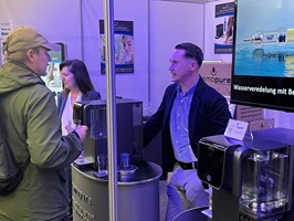 Ein weiteres Highlight der Messe war die hochentwickelte Osmopure SMT 9000, eine Sprudelwasser-Sodawasser-Anlage, die in ihrer Qualität mit Produkten aus der Gastronomie und Hotellerie vergleichbar ist. Diese Anlage bietet nicht nur prickelndes erfrischendes und gekühltes Sprudelwasser, sondern überzeugte auch durch ihre smarten Abmessungen, Benutzerfreundlichkeit und Effizienz. Weitere Info zum Gerät..