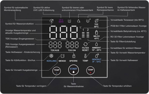 - Anzeige wenn UVC LED Tiefenentkeimung aktiv
